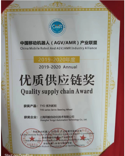 - 「優(yōu)質(zhì)供應(yīng)鏈獎(jiǎng)」上海同毅——TYD系列舵輪
